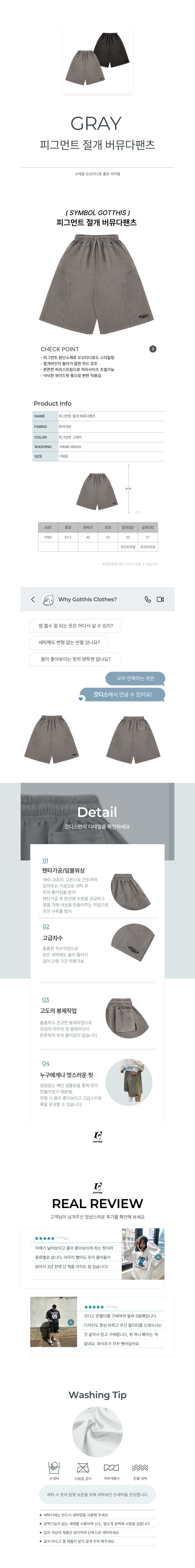 피그먼트 절개버뮤다팬츠 그레이
